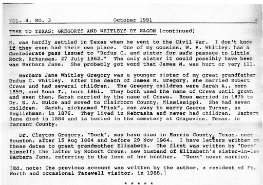 I was born on Big Rock Creek, right under Roan Mountain, in Mitchell County, North Carolina, on January 17, 1856. My parents were John and Elizabeth __________ (I forgot her maiden name). My grandparents were Constantine and __________ Brooks. He was a half Indian and lived in Rutherford County, NC out the South Carolina line.