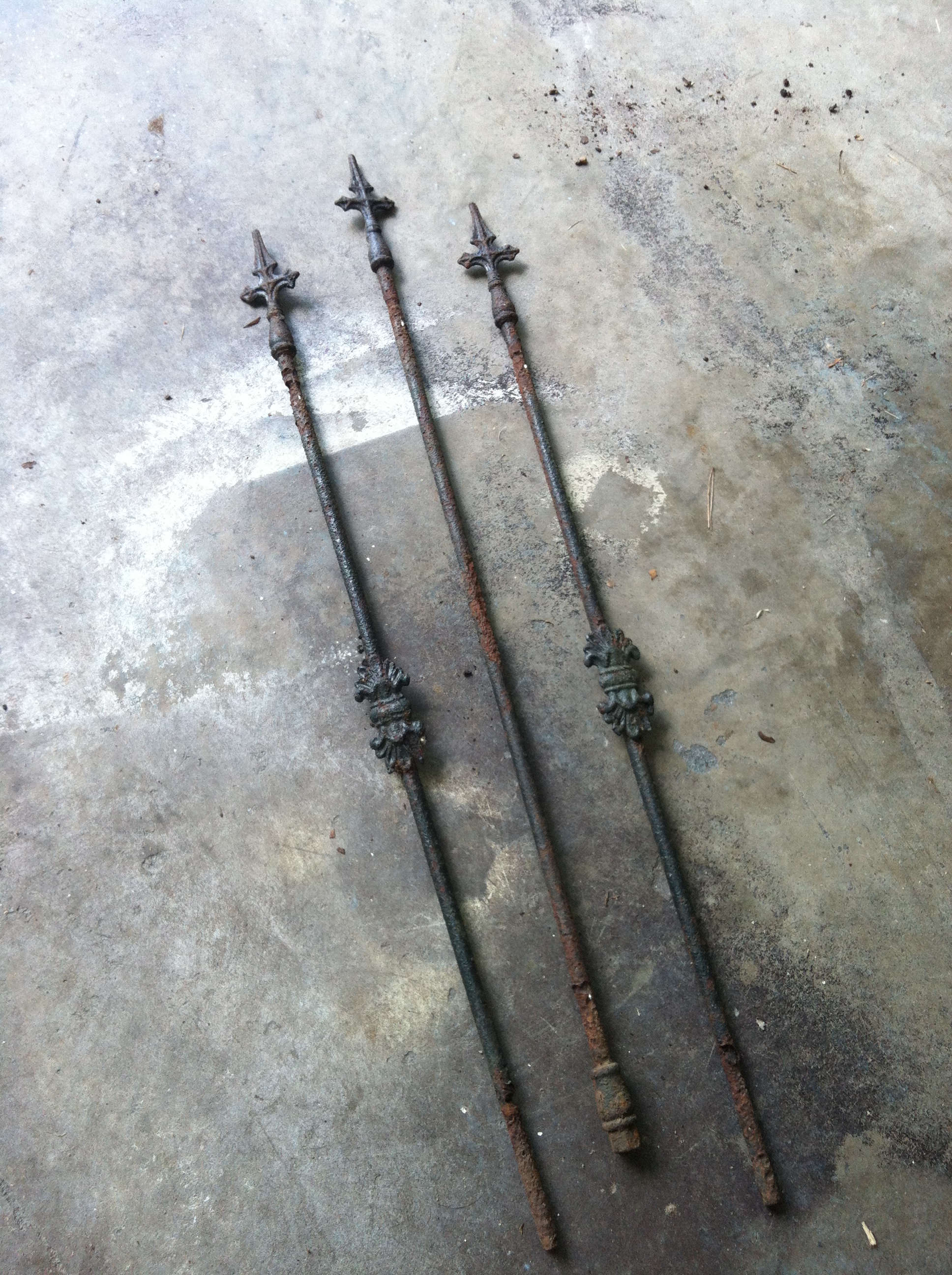 I’ve decided to share my fence at the Sweet South French Country Flea Market on October 19th, 9-4. Yesterday, my husband was kind enough to cut (yes – that kind of gives me the heebie jeebies) one piece of fencing into sections that others may use in their own vintage home or garden. Because I needed a rusty, crusty piece of 3-pickets to hang in my house, I decided to make 7 small pieces available at the market. Two 6-picket pieces at $65 each, two 3-picket pieces at $50 each and 3 single pickets (price to be determined when I figure out how useful they are??).