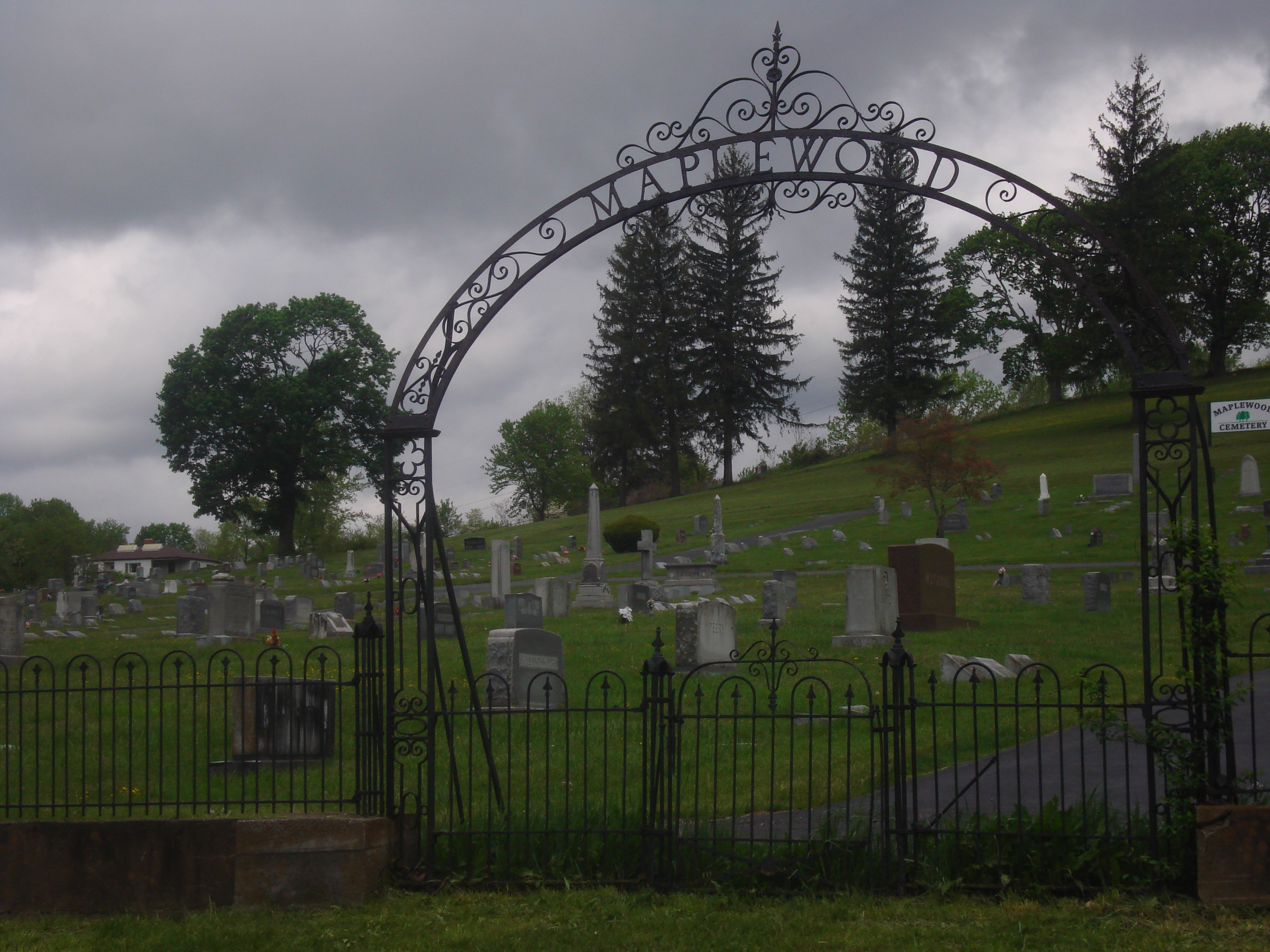 For many years the old wrought iron fence had protected a family plot at the Maplewood Cemetery in Tazewell, Virginia. Made by Stewart Iron Works, Cincinnati, Ohio by the Stewart family whose roots were in blacksmithing. The emblem on my gate is difficult to read today due to the corrosion and rust over the years. …but I wouldn’t change a thing about it.