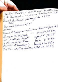 Once settled in at Phyllis’s childhood home, she sent a couple of texts to cousins in search of THE Buckland Family Bible with names and dates recorded. Eureka! Every genealogist’s treasure chest of data. (photos below) Before long, a couple of cousins and my brothers arrived to share fun times as we sat on the screen porch at Aunt Clara’s. Good times!