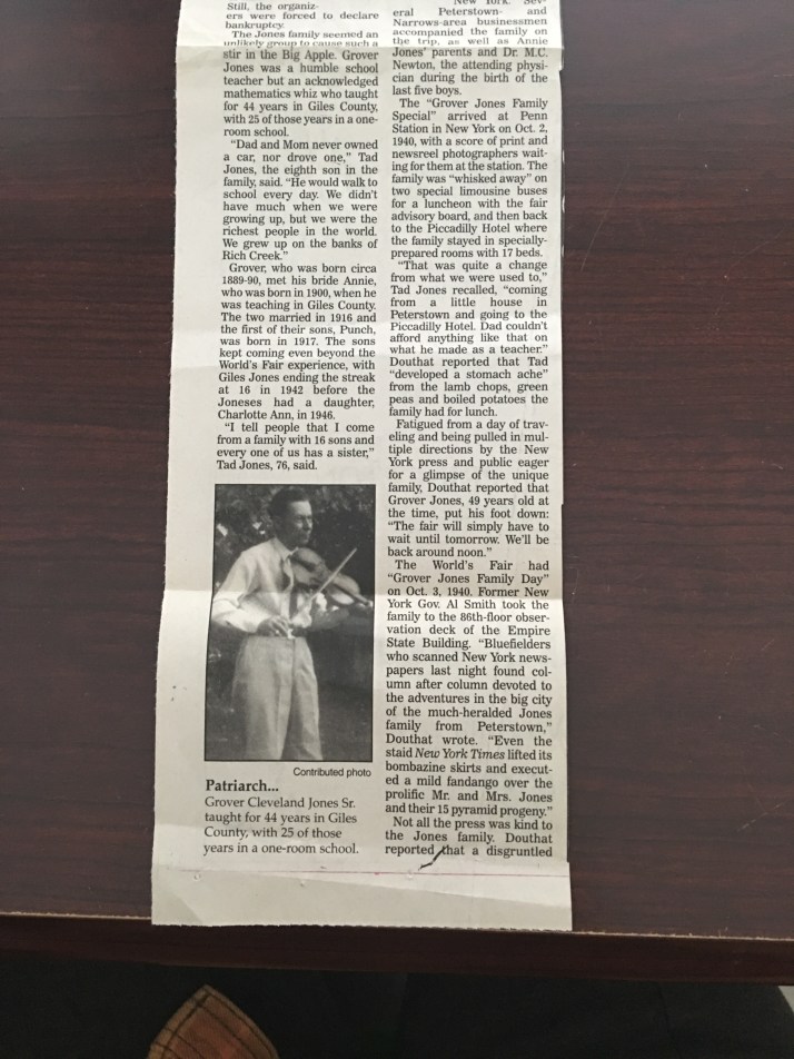 The Jones family seemed an unlikely group to cause such a stir in the Big Apple. Grover was a humble school teacher but an acknowledged mathematics whiz who taught for 44 years in Giles County.